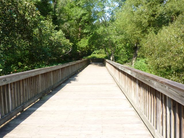 Just off the main parking lot are the large playgrounds, picnic shelters, open green space, bathrooms and wildlife garden. These areas are surrounded by a paved loop trail, which can be perfect for incorporating some biking into your outing. The playground for older kids features challenging climbing walls and ropes, zip-lining, tall slides, spinning chairs, swings, and balancing pieces. Most of the older-age playground’s features are connected, making it a super fun place to play “the floor is lava.”