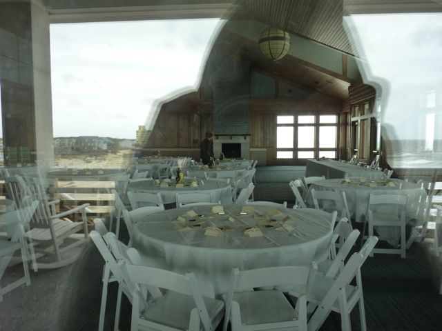 On the second story of the pier is a large reception room available to rent for private events. It has a plasma TV, floor-to-ceiling fireplace, and gorgeous globe-like chandeliers. The wrap-around porch with rocking chairs provides 270 degree views of the pier and ocean. Chair sponsorships are also available.