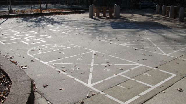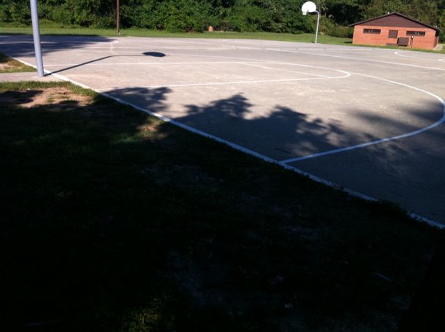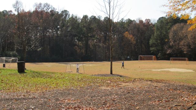 After exhausting our climbing skills, we explored the nearby paved trail in search for the other playground. At the end of our short walk we saw a large lighted multipurpose artificial turf field with field hockey, soccer and football goals, a large open field, small mobile concessions, fenced-in basketball, community center, baseball fields, a line of porta-johns, tennis courts, and a playground. Unfortunately the playground was being resurfaced while we were there so it was closed, but looked like it offered a lot for all ages and was fenced in! The multipurpose field conditions were pristine – the grass was a luscious green color and very well maintained. Another interesting feature of this park is the natural area preserved next to the sports fields; I imagine the spectators enjoy some depth to the typically flat parks.